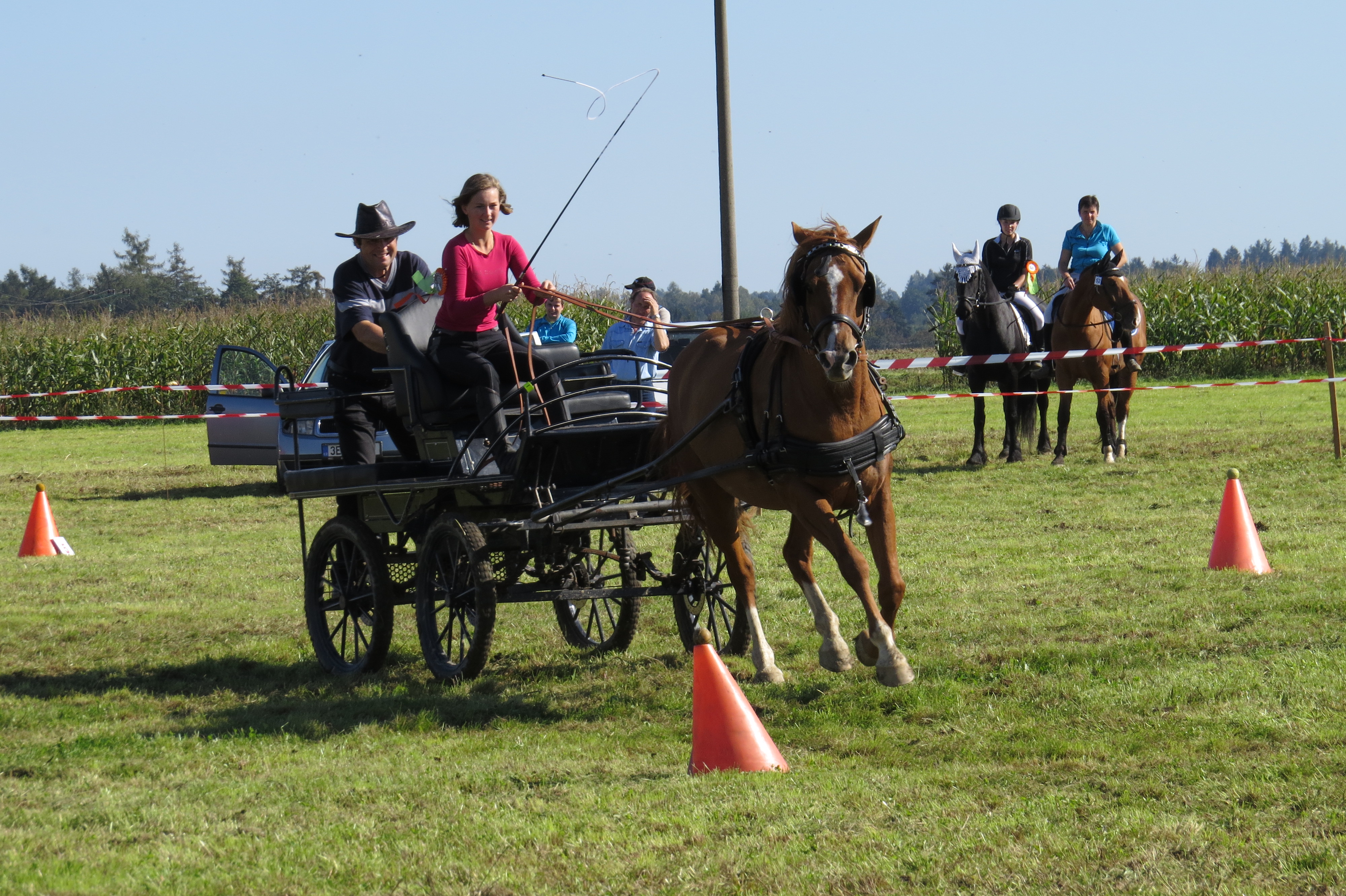 Odpoledne proběhnou závodní klání koní a jejich majitelů na dvou kolbištích. Uvidíte ukázku práce jízdní policie, vozatajský parkur, ovladatelnost koně v kládě, skokové ukázky, ukázka orby s chladnokrevnými koňmi, jízdu zručnosti, ukázky drezury a westernové ukázky. Doplněním celé akce je výstava zemědělské techniky, a i letos vystaví své čtyřkolky společnost Ridewheel. Pro ději bude připravena oblíbená dětská farma, pro všechny pak ochutnávky potravinářské divize Agrofertu.