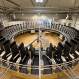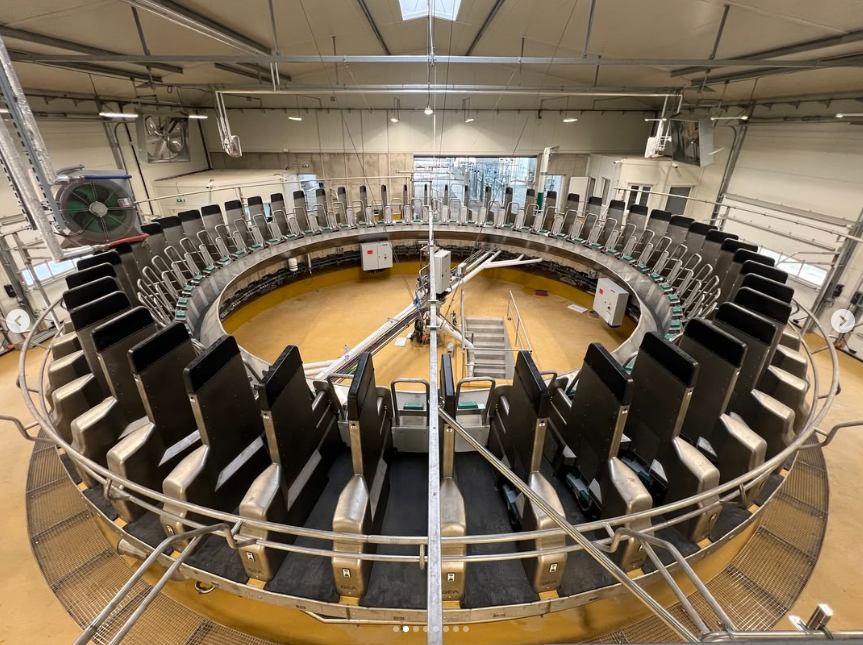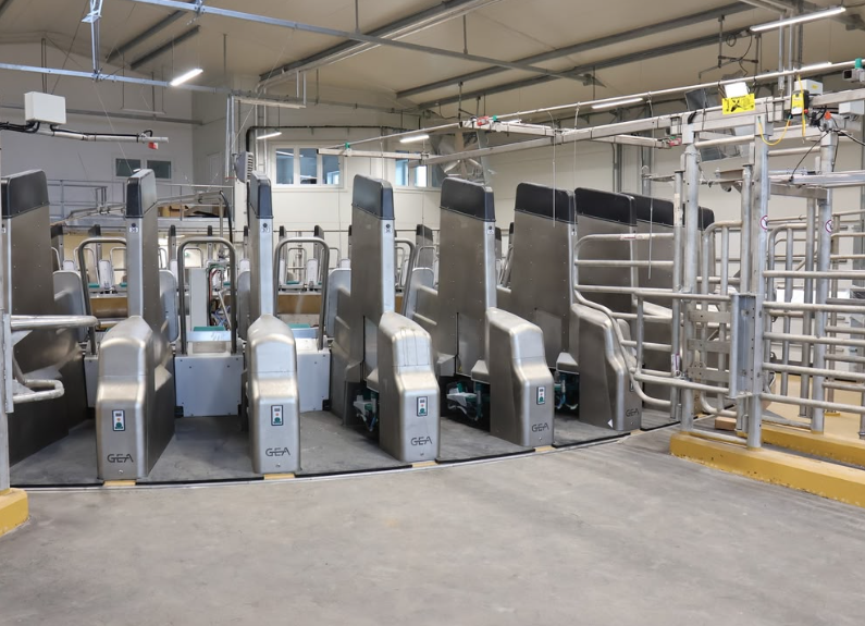 Na dojícím kruhu je 50 dojících stání a každé jednotlivé místo má svého dojicího robota. Průchodnost dojírny je 250 krav za hodinu, dokáží zde tedy podojit více než 1000 dojnic za přibližně 4 hodiny. Dojnice vstupují do kruhové dojírny z prostoru čekárny, kde je také instalovaný přiháněč s funkcí shrnování kejdy.