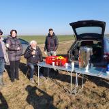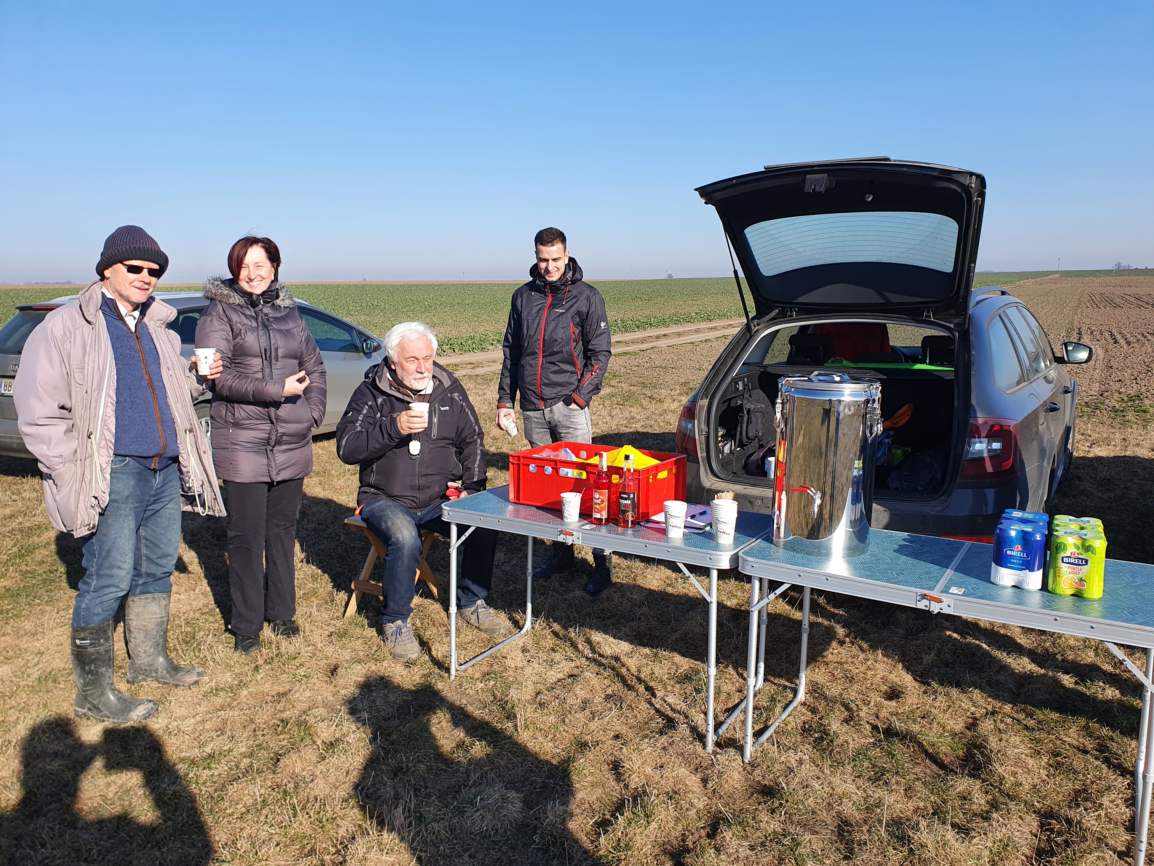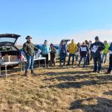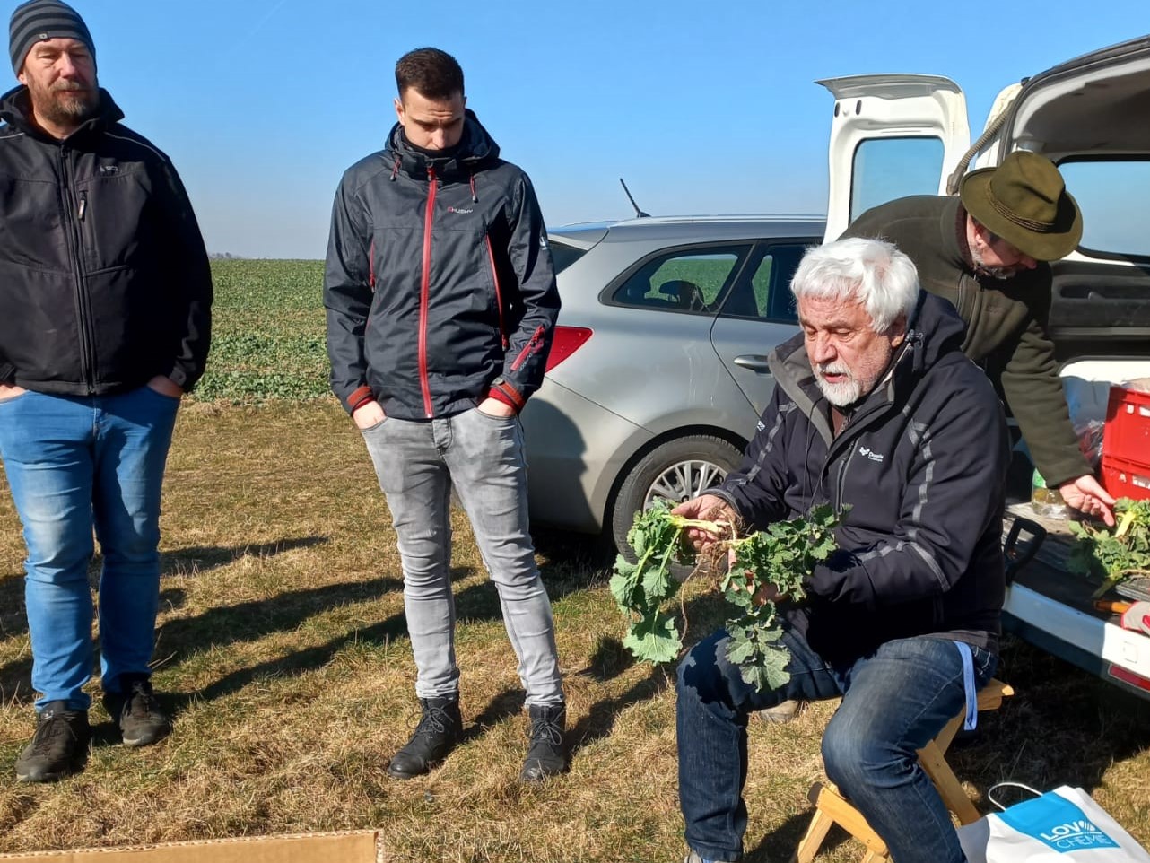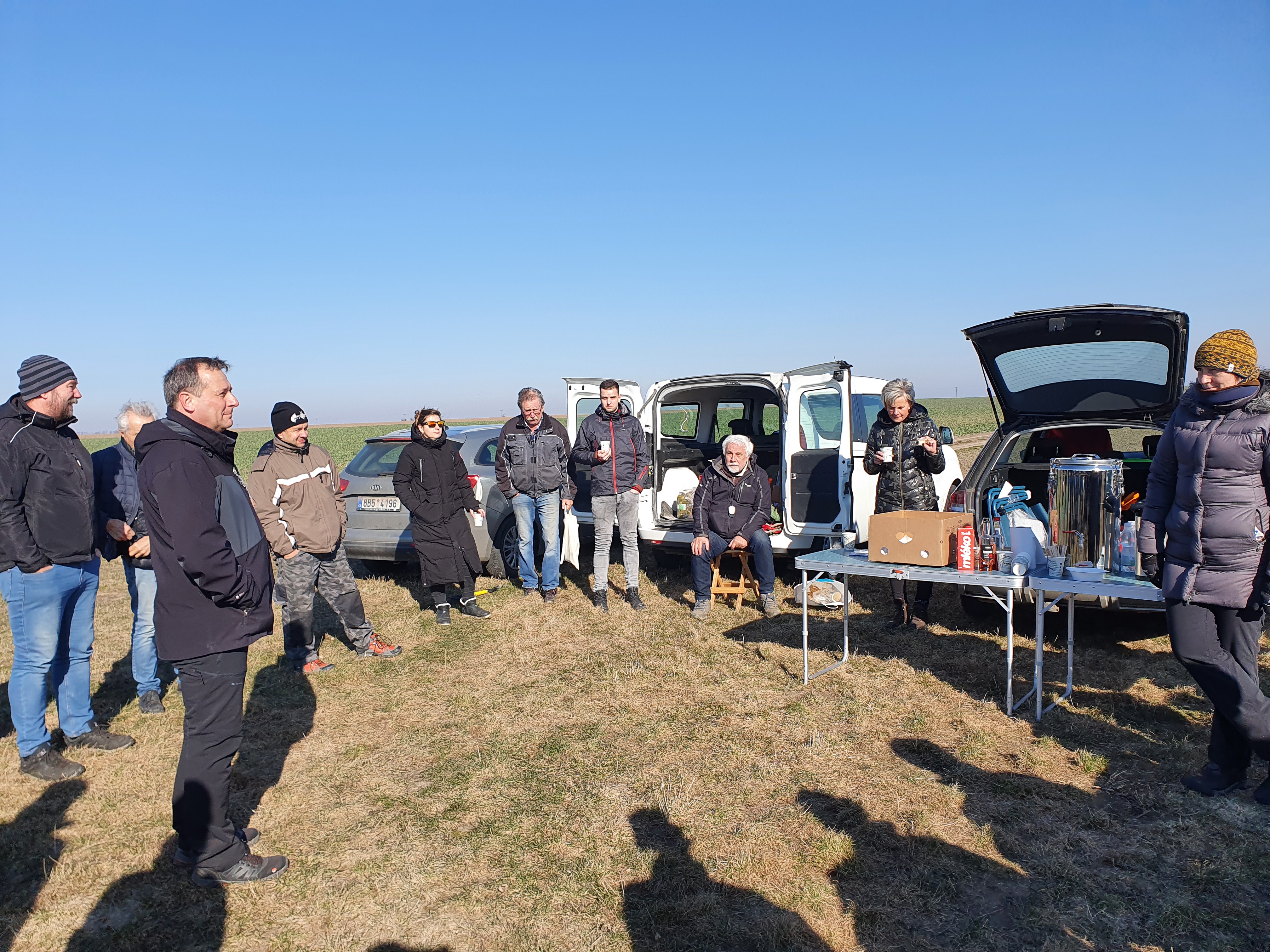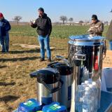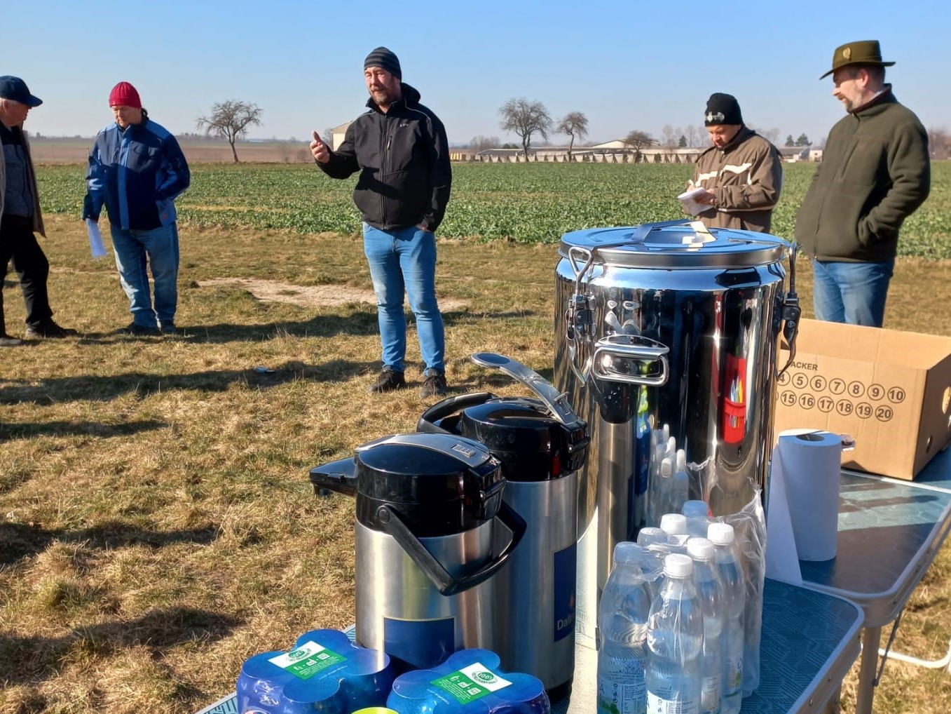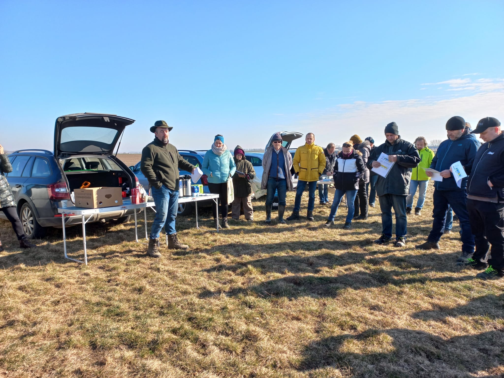 I přes mrazivé ráno se na poli sešlo více než 40 zemědělců a obchodních zástupců pořádajících společností. Občerstvení, včetně teplého čaje, bylo zajištěno a nálada byla dobrá.