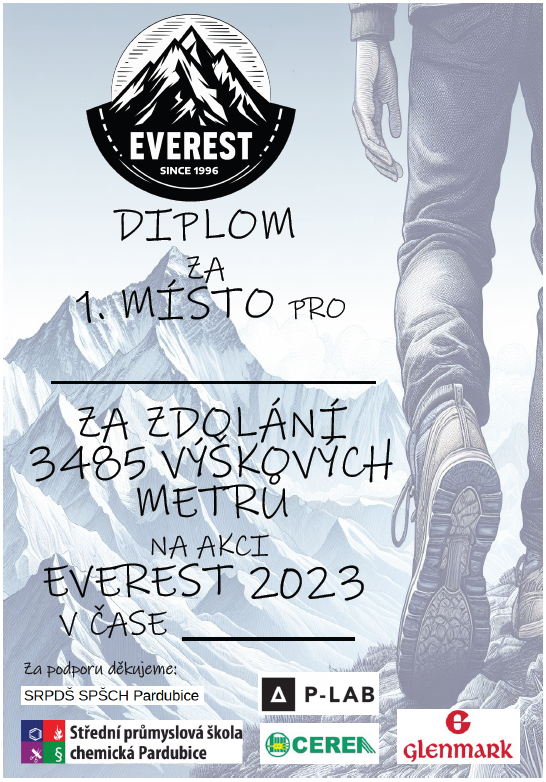 Studentská akce Střední průmyslové školy chemické Pardubice s názvem EVEREST 2023 (zdolání 3485 výškových metrů) se koná od roku 1996 a v tomto školním roce bylo z finančních důvodů její konání ohroženo. Naštěstí jsme se to dozvěděli včas a mohli jsme akci podpořit částkou 10 tis. Kč. Zde se hodí rčení: Za málo peněz hodně muziky. Díky toto částce proběhla super akce – mrkněte: