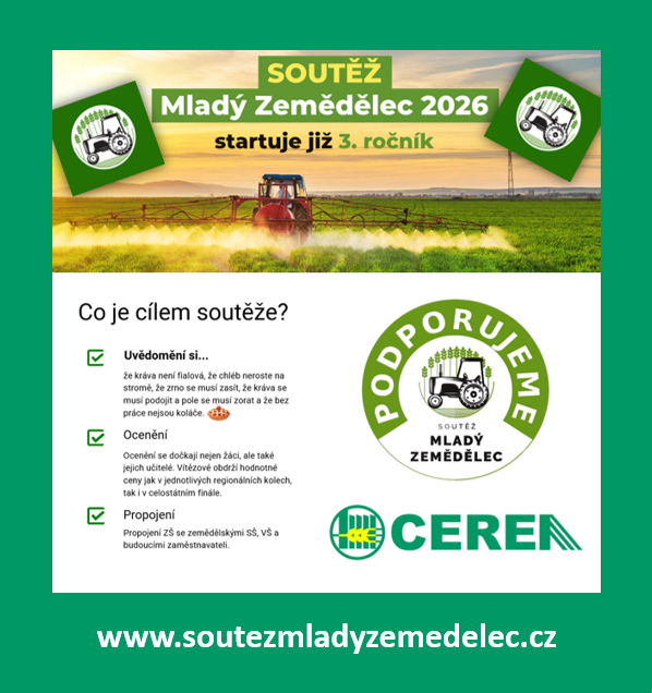 Ve školním roce 2025/2026 startuje už 3. ročník oblíbené soutěže MLADÝ ZEMĚDĚLEC, kterou s radostí podporujeme od samého začátku. Základní školy, které se do soutěže přihlásily, právě obdržely soutěžní testy – ty prověří znalosti sedmáků a osmáků z oblasti zemědělství, přírody a venkova. Podívejte se, jaké znalosti prověřovala soutěž MLADÝ ZEMĚDĚLEC v loňském ročníku – skvělá inspirace pro letošní účastníky!