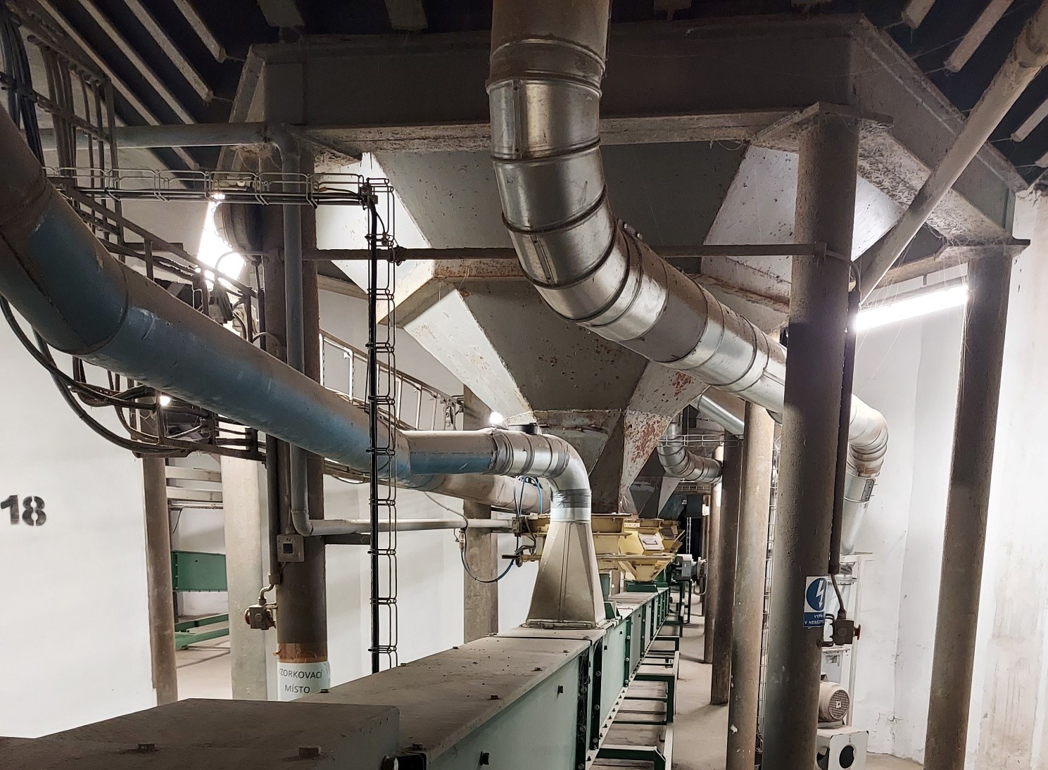 Možná jste si někdy při pohledu na silo říkali, jaký je asi výhled z jeho střechy. Dnes vám přinášíme pár takových fotek ze střechy sila v Říkově. Zároveň vám umožníme nahlédnout, jak to vypadá uvnitř sila: snímek na dopraví cesty nad buňkami pod střechou a ve sklepě pod nimi. Také můžete vidět čističku komodit, úplně novou váhu a říkovskou chloubu - Delfína, který zde pomáhá s úklidem.