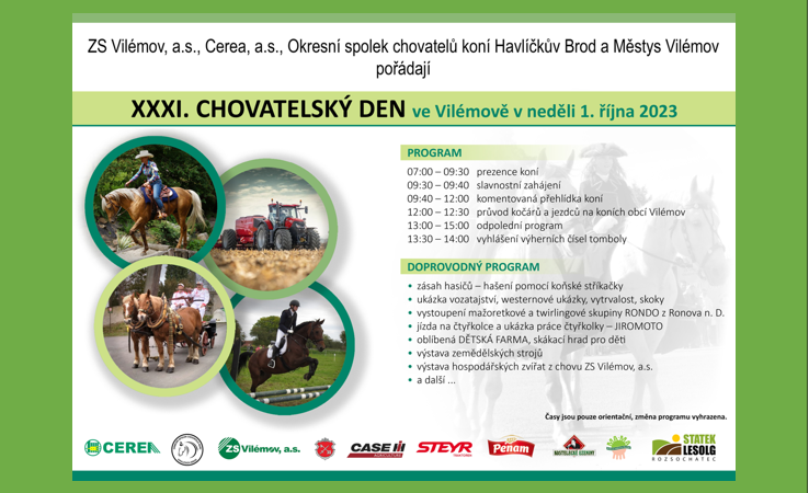 Zaznamenejte si tedy do svých diářů: neděle 1. října od 9:30 hodin, Vilémov u Golčova Jeníkova, areál společnosti ZS Vilémov.